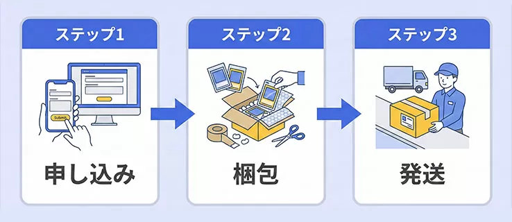 最初に申し込みを完了させると、必要な書類やラベルが揃い、その後の作業がスムーズになります。