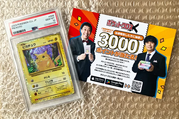 そこで、思い切って1口8,888pt(8,888円相当)の1/2の確率で高額カードが当たる「にぶいち」オリパを引いてみたところ、何かのPSA10(20,000円相当)が当たり、「ピカチュウ Classic(PSA10)」が実際に届きました。
